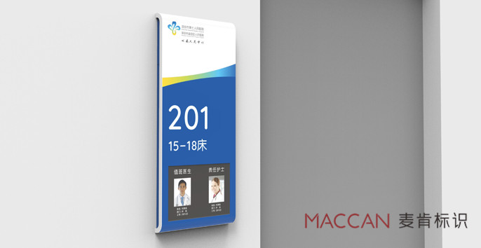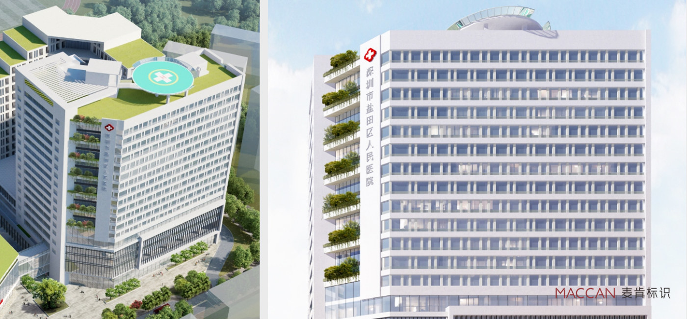 麥肯從建筑提取造型,兩片建筑交叉塑造成一個橢圓,像兩只手呵護著患者,設計把轉折處加入圓滑化設計語言,營造一種舒適、溫馨、安全感。再加上醫(yī)院VI系統(tǒng)中的配色和輔助圖形,最終形成一整套統(tǒng)一的醫(yī)院標識造型。