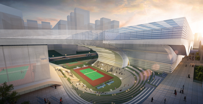 寶安體育中心云館位于深圳市寶安區(qū)體育中心地塊內(nèi),東側(cè)臨體育中心綜合訓(xùn)練館,南鄰體育中心游泳場(chǎng)館,西臨體育館,北鄰羅田路。項(xiàng)目總用地面積21000㎡,總建筑面積60600㎡,地上3層,限高24m。要求其功能設(shè)置需要擁有室外網(wǎng)球場(chǎng),并且可滿足國(guó)家級(jí)比賽要求,并配有其它多功能體育館。