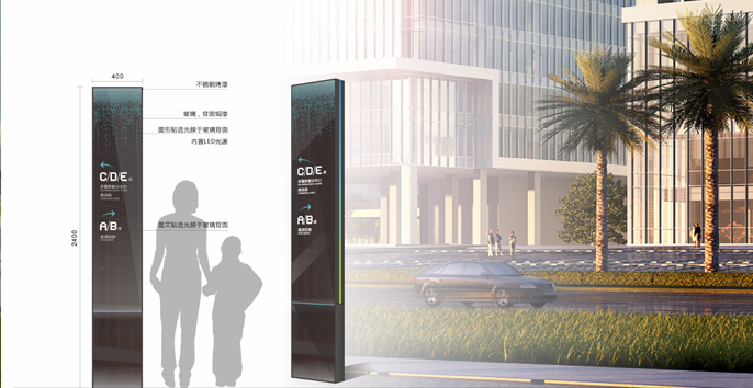 麥肯秉持“科技、時尚、年輕、未來”的設(shè)計理念,充分表達(dá)了潮流、前衛(wèi)、創(chuàng)新以及富有活力的詮釋。從玻璃、星空、未來采集設(shè)計元素,對元素進(jìn)行組合、運用、修飾、轉(zhuǎn)化和再造等,應(yīng)用到云升科學(xué)園標(biāo)識系統(tǒng)設(shè)計之中,色彩采用了天際藍(lán),材質(zhì)則采用不銹鋼烤漆,亞克力貼于玻璃表面,玻璃背面貼膜,信息內(nèi)容鏤空,圖形部分透光,內(nèi)置LED光源,奪目星空,璀璨未來。