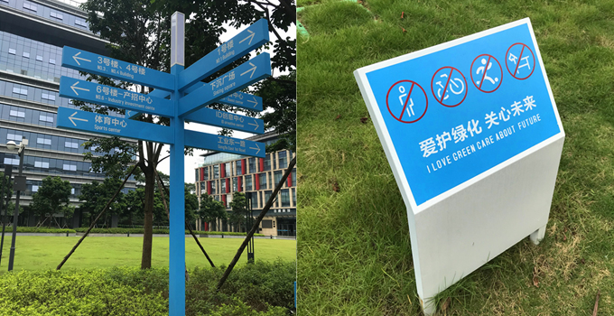 麥肯設(shè)計(jì)的導(dǎo)視系統(tǒng),將其鮮明專(zhuān)業(yè)特色的特點(diǎn),注入到標(biāo)識(shí)導(dǎo)視當(dāng)中,既符合園區(qū)主題,又展現(xiàn)著它的年輕活力。