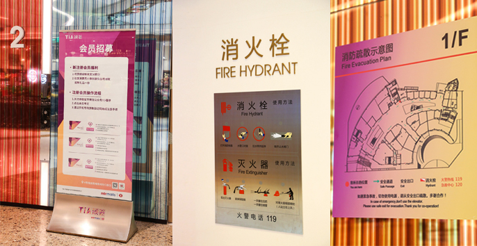 麥肯標(biāo)識(shí)團(tuán)隊(duì)為港鐵TIA頌薈商場(chǎng)標(biāo)識(shí)形象量身定制,從而為商場(chǎng)注入新鮮活力。設(shè)計(jì)師從消費(fèi)者的角度出發(fā),策劃并設(shè)計(jì)了全套導(dǎo)向系統(tǒng),并在其中融入了明亮的視覺圖標(biāo)體系。麥肯標(biāo)識(shí)設(shè)計(jì)了一套親切友好的視覺形象,其視覺語言輕松靚麗,結(jié)合商場(chǎng)空間及裝飾風(fēng)格使標(biāo)識(shí)與商場(chǎng)氣質(zhì)相符,以靈動(dòng)的標(biāo)識(shí)貫穿整個(gè)商場(chǎng)空間。