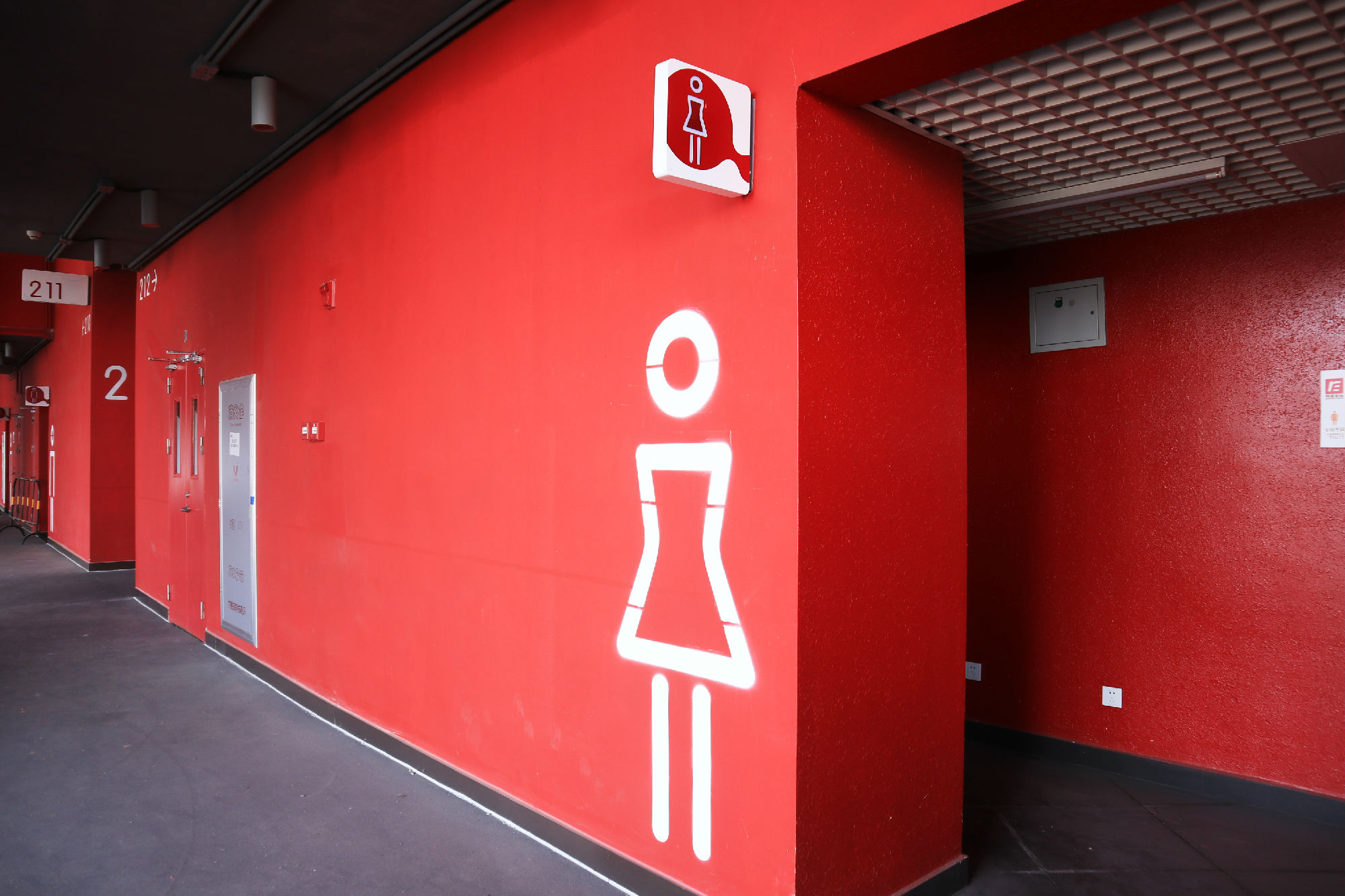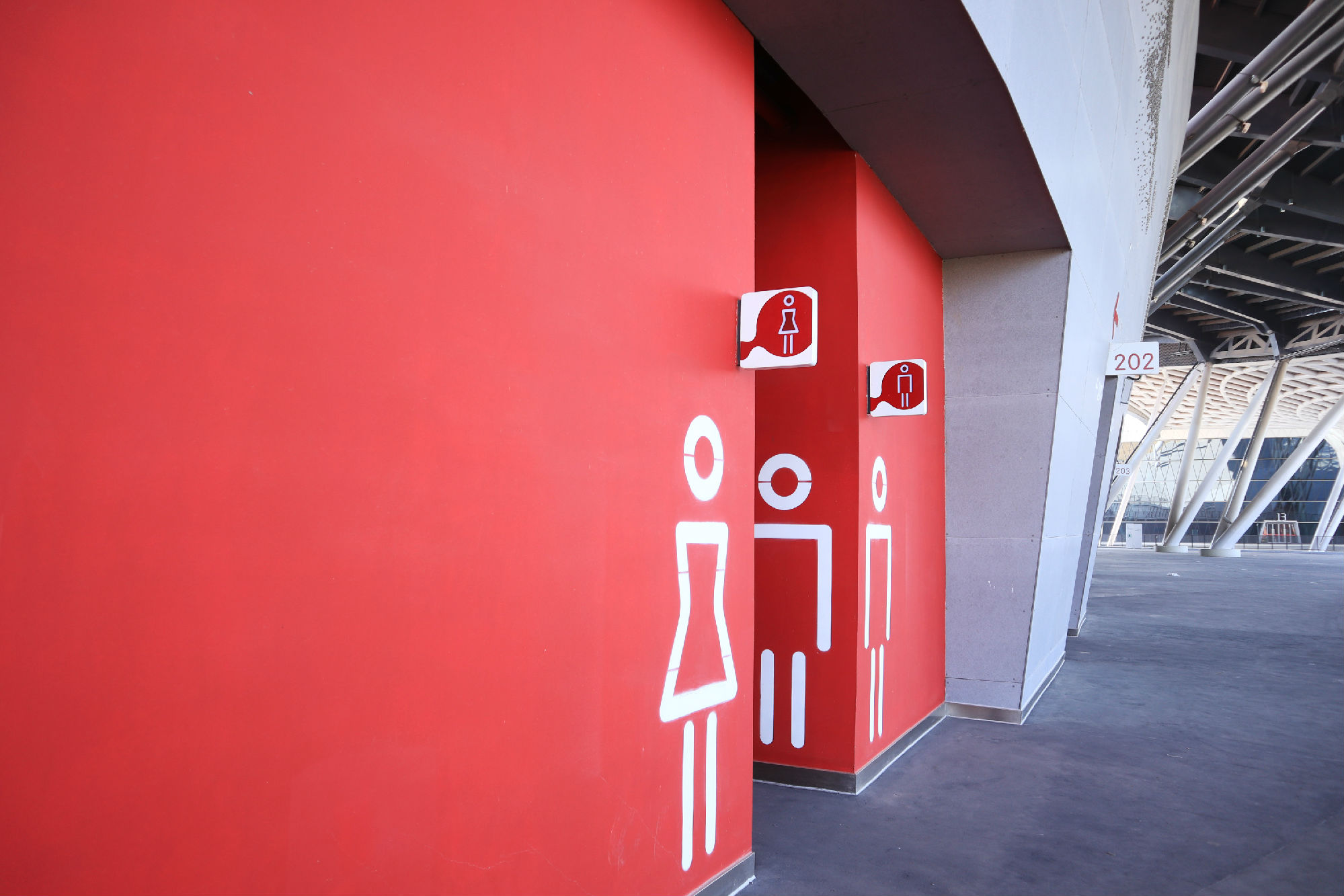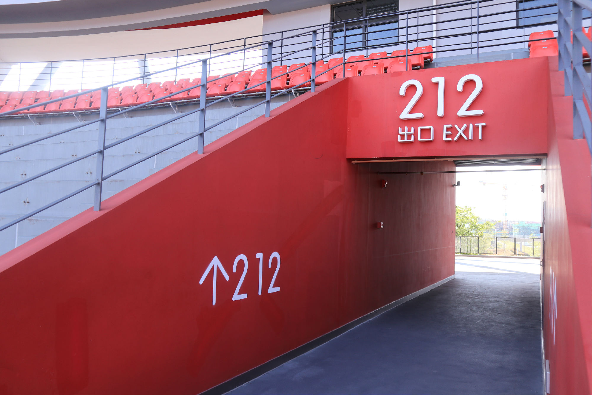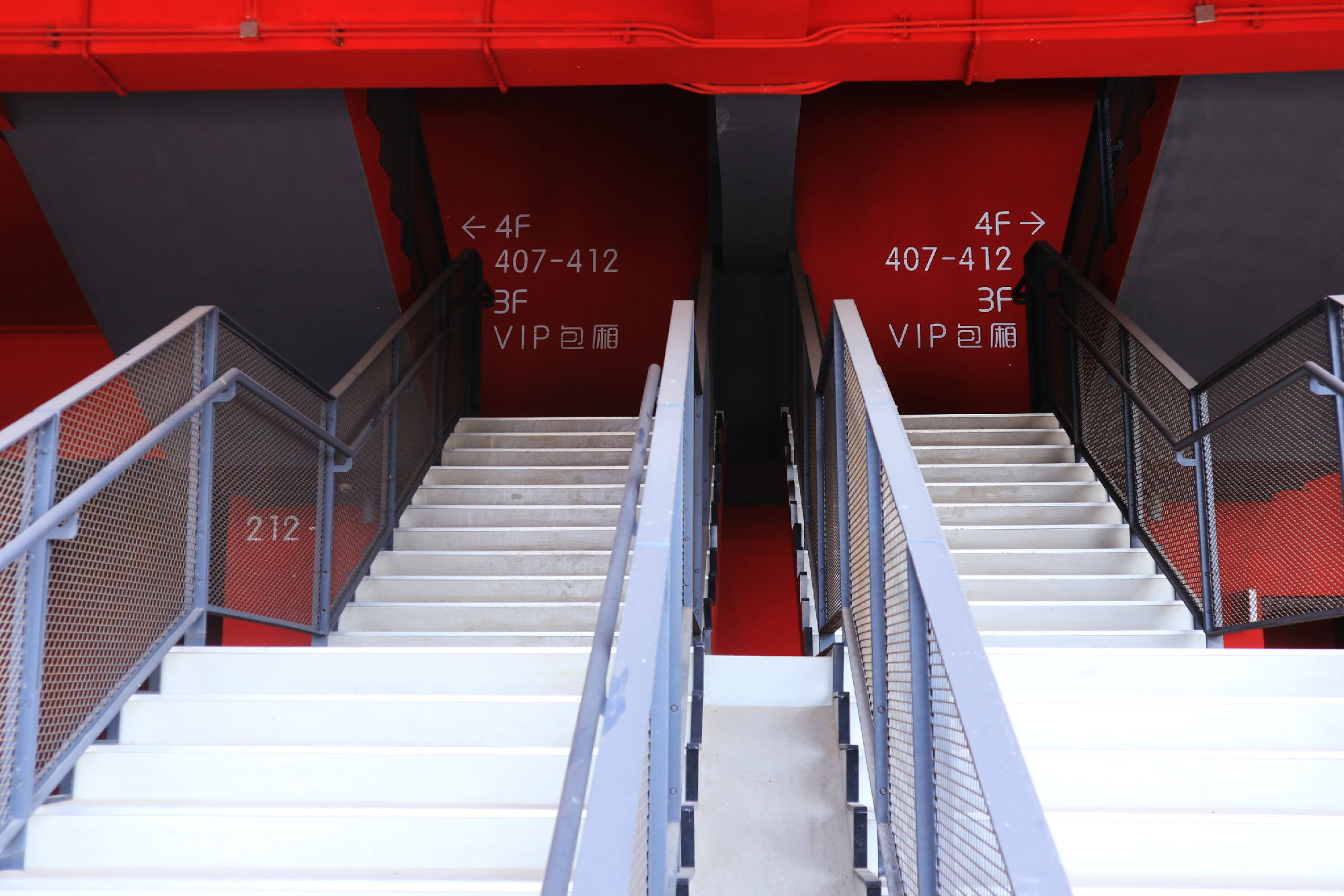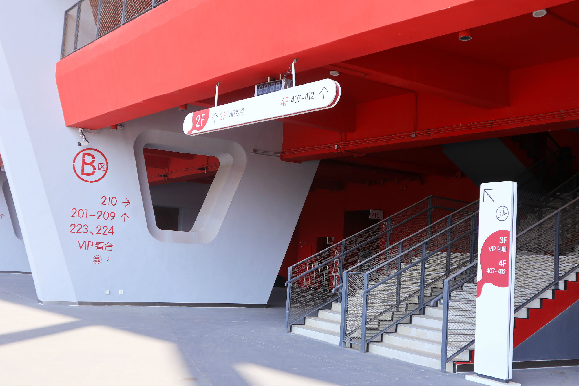 為了契合整體空間氛圍,麥肯設(shè)計(jì)團(tuán)隊(duì)使用紅色、白色、黑色三種顏色為標(biāo)識(shí)導(dǎo)視主體顏色,使整個(gè)場(chǎng)館充滿(mǎn)體育競(jìng)爭(zhēng)精神。