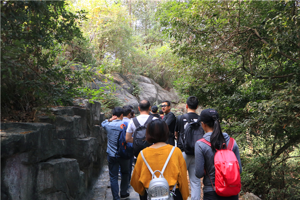 11月30日(周六早晨)在約定的時(shí)間內(nèi),小伙伴們陸續(xù)到達(dá)羊臺(tái)山,人員到齊后我們就出發(fā)啦。此時(shí)的青山翠綠蔥郁,空氣十分清新,讓整日對(duì)著電腦的上班族精神倍兒爽。
