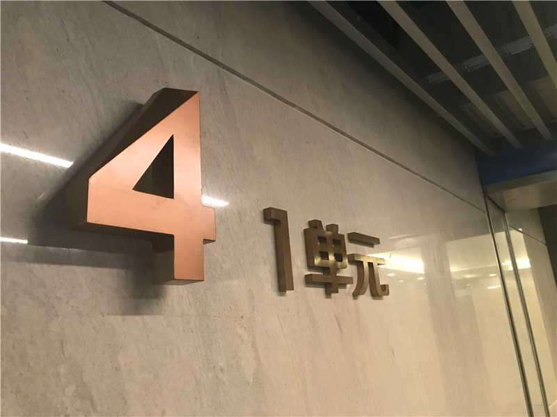 一整套導視系統(tǒng)以質(zhì)樸的金屬和明亮的電鍍拉絲不銹鋼飾面營造出溫暖的空間。在公共空間和停車場中,三維金屬字體與平面繪制的標識和圖形符號相輔相成,整套導視系統(tǒng)以易讀性和耐用性很好的貼合到架構中,為業(yè)主提供流暢的視覺體驗。