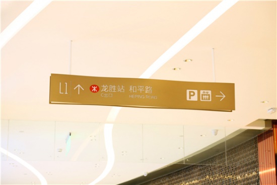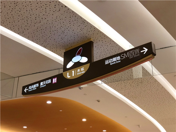 根據(jù)不同分區(qū)結(jié)合商場內(nèi)部室內(nèi)設(shè)計(jì)賦予每個(gè)區(qū)域的導(dǎo)視不同顏色,有星空燦爛之意。另外商場主體部分似盛開的花瓣,自然生態(tài)與高端科技融合,金屬材質(zhì)結(jié)合亞克力及燈光點(diǎn)綴做到標(biāo)識(shí)導(dǎo)視和諧醒目,打造一片璀璨星空。
