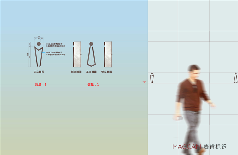 標(biāo)識(shí)系統(tǒng)從項(xiàng)目特殊造型著手,通過現(xiàn)代簡(jiǎn)潔的處理手法,建筑的“門”進(jìn)行變化組合,通過交錯(cuò)穿插的形式,增加標(biāo)識(shí)的造型豐富,強(qiáng)化標(biāo)識(shí)與建筑的關(guān)系。