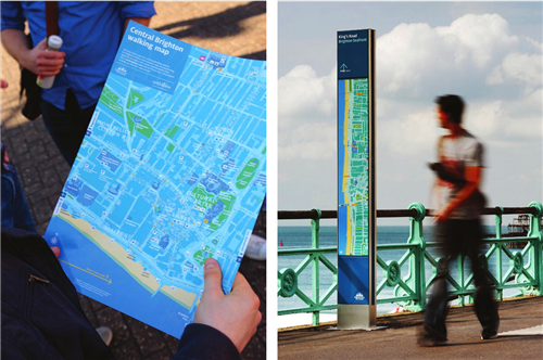 首批20個(gè)新的路標(biāo)標(biāo)識(shí)已經(jīng)設(shè)置在城區(qū)中心了,從海邊的皇后大道到城中著名的特魯雷街戲院區(qū),新版的城區(qū)地圖在游客信息咨詢中心可以免費(fèi)獲取。同時(shí),電子地圖可以在城市的旅游咨詢網(wǎng)站上找到你所需要的信息,在App商店、iTunes商店等都可以找到相應(yīng)的程序下載。在布賴頓海邊,設(shè)計(jì)醒目、簡(jiǎn)捷的城市地圖導(dǎo)視系統(tǒng),更能體現(xiàn)出空間對(duì)人行道的重要性。