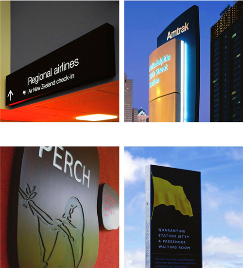 城市街區(qū)、公園、機(jī)場(chǎng)、車站等公共場(chǎng)所的普遍特征就是人流量巨大、活動(dòng)范圍有限等,針對(duì)這些特殊的情況,導(dǎo)視系統(tǒng)就需要特定的設(shè)計(jì)手段和形式。公園是活動(dòng)面積比較寬闊的公共場(chǎng)所,其導(dǎo)視系統(tǒng)設(shè)計(jì)對(duì)象主要是出入口和各個(gè)休息地點(diǎn)的指示標(biāo)識(shí),盡量做到標(biāo)識(shí)設(shè)計(jì)與公共場(chǎng)所之間保持一種相互平衡的關(guān)系;機(jī)場(chǎng)是一個(gè)完全不能缺乏導(dǎo)視系統(tǒng)的公共空間,沒有完整和人性化設(shè)計(jì)導(dǎo)視系統(tǒng)的機(jī)場(chǎng)是不存在的。人流量大、功能區(qū)域眾多、活動(dòng)范圍廣等特點(diǎn),就決定了公共導(dǎo)視系統(tǒng)對(duì)機(jī)場(chǎng)的重要性;車站的占地面積是三者中最小的,這就要求導(dǎo)視系統(tǒng)的設(shè)計(jì)清晰、明確、簡(jiǎn)捷。標(biāo)志、顏色、招牌等都要在有限的空間里發(fā)揮到最大的作用。車站中的導(dǎo)視系統(tǒng)更需要在有限的時(shí)間和空間內(nèi)發(fā)揮到傳遞信息的重要作用。在不妨礙公共場(chǎng)所過多空間的前提下,公共的導(dǎo)視系統(tǒng)與空間的關(guān)系應(yīng)該是有主次之分的,而空間是設(shè)計(jì)的主體,導(dǎo)視系統(tǒng)只是空間設(shè)計(jì)的輔助。