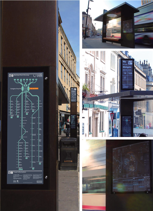 交通信息系統(tǒng)同樣作為巴斯市信息導(dǎo)視系統(tǒng)的一部分,其中就包括了站點(diǎn)地圖和時(shí)間表。