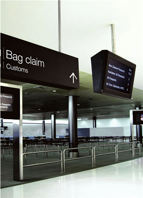 設(shè)計(jì)師讓這套導(dǎo)視系統(tǒng)成為了新西蘭國(guó)際機(jī)場(chǎng)著名的“商標(biāo)”,整套導(dǎo)視系統(tǒng)中數(shù)字設(shè)計(jì)一改以往死板的形象,簡(jiǎn)捷、清晰的系統(tǒng)可以讓信息第一時(shí)間傳遞給那些急需幫助的旅客們。