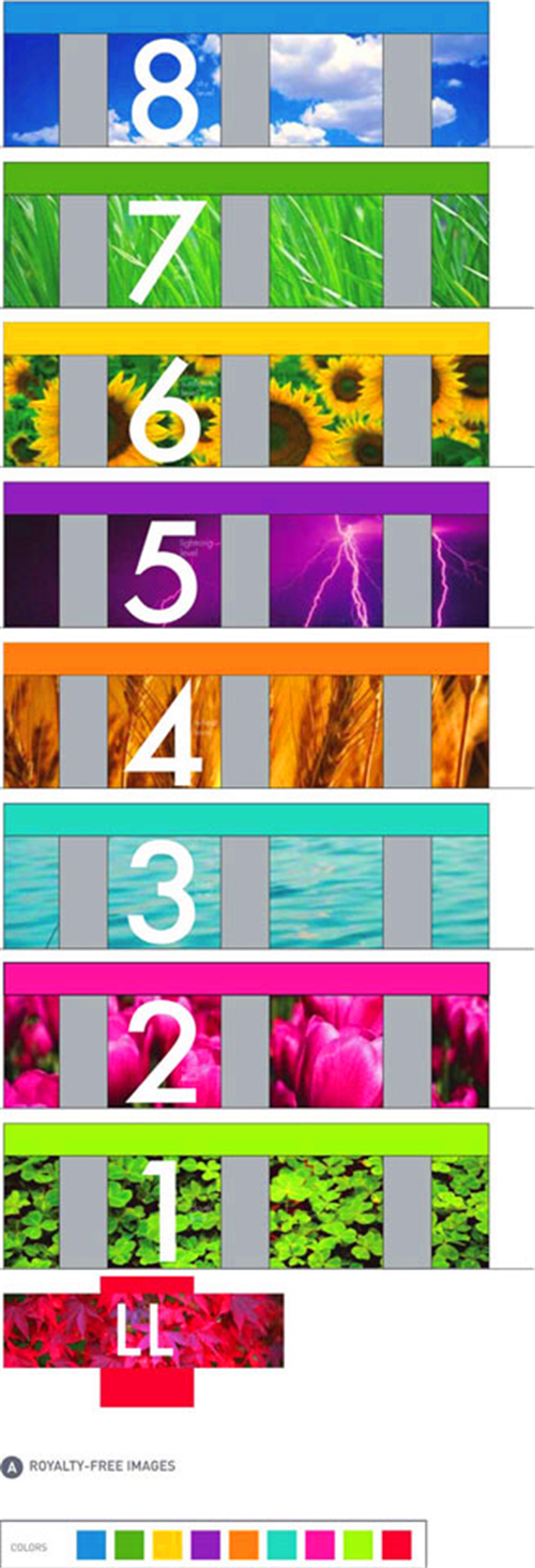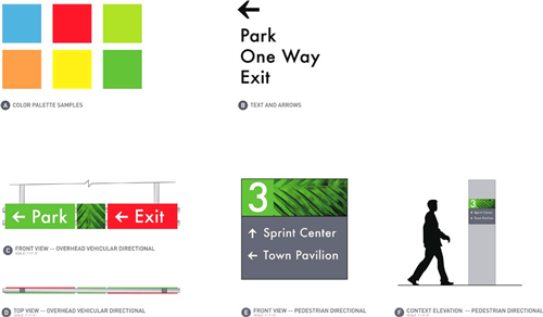 這是一個(gè)針對(duì)多層停車場(chǎng)中數(shù)字與標(biāo)識(shí)設(shè)計(jì)的導(dǎo)視系統(tǒng)設(shè)計(jì)。設(shè)計(jì)師采用了深綠色、橙色、藍(lán)色、粉紅色、亮綠色、血橙色、藍(lán)綠色和灰色等光亮鮮明的顏色來區(qū)分不同樓層的功能,利用建筑的透光性和開敞的特點(diǎn)來選用不同的顏色。