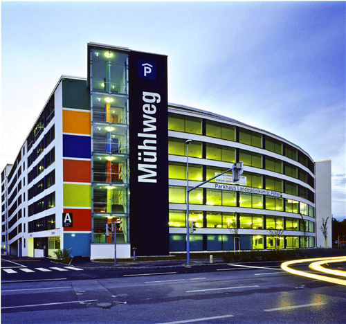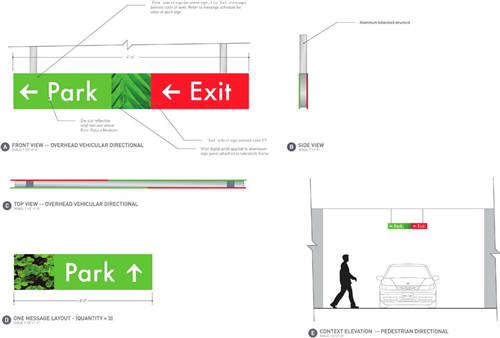 這次導(dǎo)視系統(tǒng)的重新設(shè)計(jì)利用了光亮的顏色作為辨識(shí)的首要符號(hào)。為了讓停車場(chǎng)煥發(fā)全新的生機(jī),導(dǎo)視系統(tǒng)設(shè)計(jì)賦予了獨(dú)特的顏色特征和名稱。很多的標(biāo)識(shí)與建筑主體相互映襯,顏色的效果吸引了人們的眼球并留下了深刻印象。同時(shí),導(dǎo)視系統(tǒng)還延伸到停車場(chǎng)建筑的內(nèi)部結(jié)構(gòu)設(shè)置,如樓梯和出口、入口和電梯處。因此每一層的功能轉(zhuǎn)換區(qū)域都會(huì)顯得很清晰,停車場(chǎng)雙螺旋的設(shè)計(jì)讓人感覺到停車場(chǎng)設(shè)計(jì)的簡捷與安全。