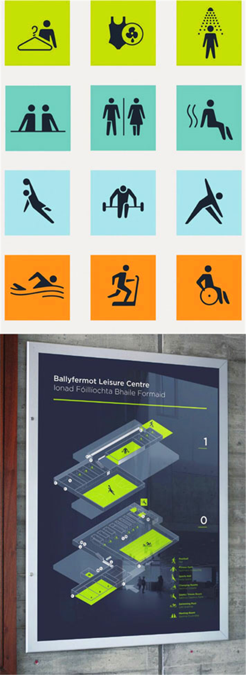 Detail.設(shè)計(jì)工作室為都柏林休閑中心設(shè)計(jì)了一套標(biāo)識(shí)和導(dǎo)視系統(tǒng)。設(shè)計(jì)團(tuán)隊(duì)還與設(shè)計(jì)師McGarry Ní éanaigh和建筑設(shè)計(jì)師Donnelly Turpin共同合作,設(shè)計(jì)一套人形的插畫標(biāo)識(shí)。全套導(dǎo)視系統(tǒng)遍布了中心的各個(gè)角落。