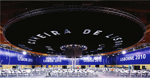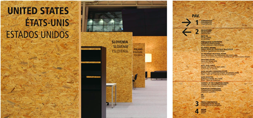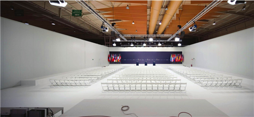 P-06 ATELIER設(shè)計(jì)工作室與建筑師RISCO等合作。整個(gè)會(huì)場的面積有35000平方米,可以憑借出色的導(dǎo)視系統(tǒng)讓上千成萬的與會(huì)人員實(shí)現(xiàn)自由活動(dòng)的目的。鮮艷色彩的選擇讓整個(gè)空間給人一種寬敞、簡捷的秩序感。在人行過道的地板上和主要通道中,白色的字體配以黑色的地板。在會(huì)議中心的人行道地板上同樣將大型圖案作為背景,天花板上那螺旋上升的圓形板是設(shè)計(jì)的最大亮點(diǎn)。