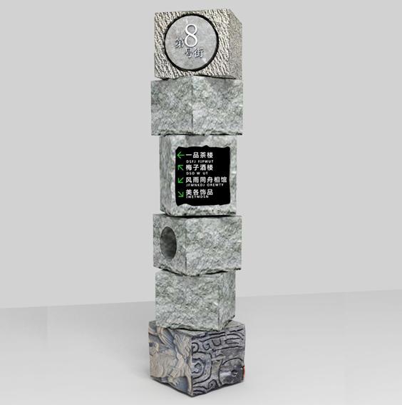 這里所說的石材是天然粗加工的,這類石材的紋理漂亮并自帶一份文化底蘊,不少旅游景點會選擇石材材質(zhì)來制作導視,形成自有的肌理體驗,感受大自然的刀斧神功。