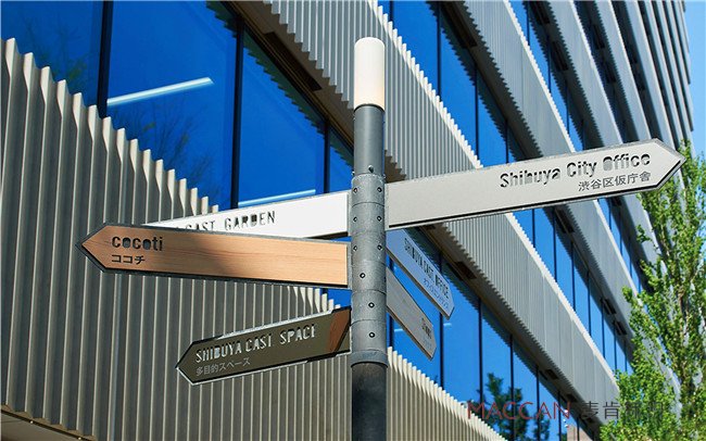 以上是商業(yè)街區(qū)導向標識系統(tǒng)的五種類型,一般情況下,一個復雜的空間環(huán)境,是需要導向標識的五種類型共同起作用才能完成整套的引導功能,單獨設計一種標識是沒有意義的,各系統(tǒng)之間必須相互聯(lián)系共同作用,才能達到預想的效果。