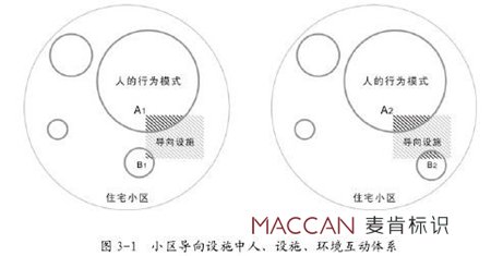 居住空間本應(yīng)成為人生活的物化反應(yīng),要根據(jù)人的行為而不是汽車交通的需要,限定居住空間的規(guī)模。許多人都在考慮如何通過對空間環(huán)境的設(shè)計,誘導(dǎo)或改變某些行為,使人類對物質(zhì)環(huán)境的反應(yīng)更具有一種持續(xù)的關(guān)系。即使個體間的不同,文化上的差別會帶來多種變化,但是有些研究人員仍然堅持空間環(huán)境的標(biāo)識設(shè)計對人們行為的影響是巨大的。然而,環(huán)境對人行為的影響并非直接的、簡單的因果關(guān)系,而是一種多因素、綜合的、系統(tǒng)的相互關(guān)系。