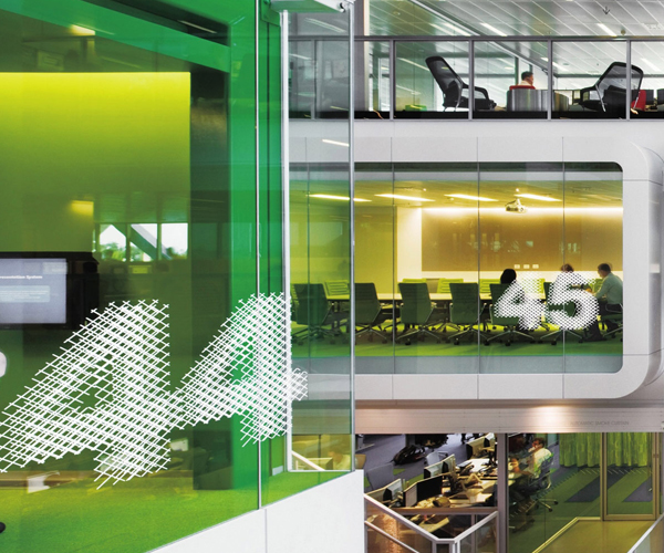 在建筑的過(guò)程中,設(shè)計(jì)師們打算將布隆伯格的產(chǎn)品信息和服務(wù)信息等能直接在大樓里轉(zhuǎn)達(dá)給任何人,包括雇員、客戶(hù)和參觀者。同時(shí),設(shè)計(jì)師創(chuàng)作出一種為布隆伯格量身定做的字體,是將Avenir字體風(fēng)格和Avant Garde字體風(fēng)格相結(jié)合的一種字體。而Avant Garde字體風(fēng)格中的“o”,設(shè)計(jì)師就用數(shù)字的“0”代替,用來(lái)體現(xiàn)布隆伯格的一種嚴(yán)謹(jǐn)?shù)钠髽I(yè)文化。