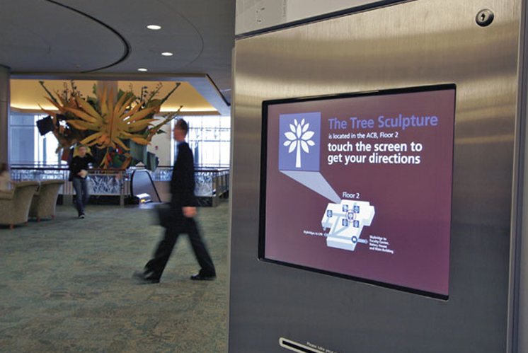 如美國德州大學(xué)MD安德森癌癥中心,就采用了觸摸屏導(dǎo)航信息亭為患者和參觀者提供導(dǎo)覽提供預(yù)約確認(rèn)和步行路線導(dǎo)向服務(wù),并可跟隨界面標(biāo)識指令打印輸出相關(guān)信息。