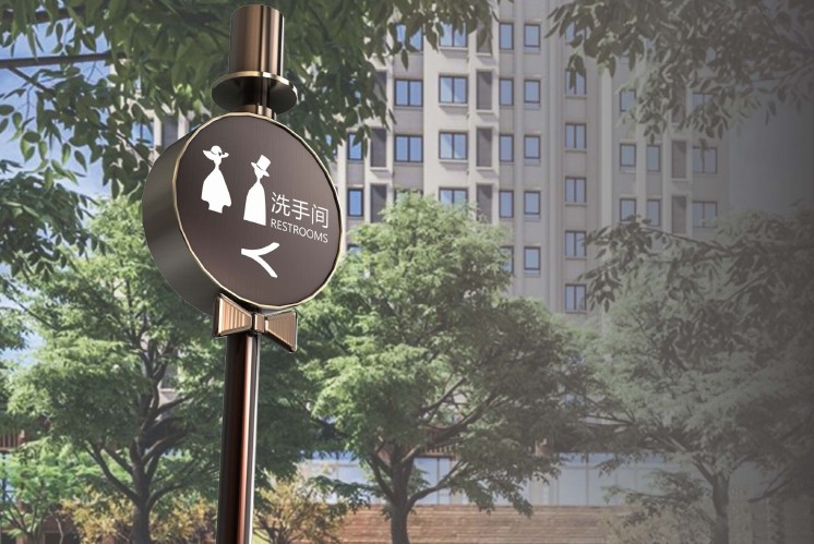 主色調(diào)上“品質(zhì)金”的選擇,標(biāo)牌造型及形式的確定,圖標(biāo)icon的設(shè)計(jì),文字內(nèi)容排版,凸顯紳士品質(zhì),無一不是專業(yè)性的體現(xiàn)。導(dǎo)視設(shè)計(jì)除了最本質(zhì)的方向引導(dǎo)之外,能夠?qū)⑽幕M(jìn)行傳播,還能引導(dǎo)一種新的生活方式,讓鄰里關(guān)系有溫度,使社區(qū)生活有色彩,人們?cè)谶@里把生活過成詩,富盈美好而精致。