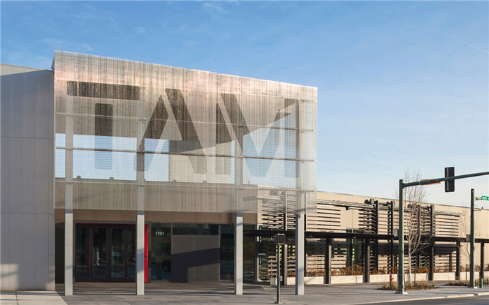 導(dǎo)視系統(tǒng)的材料的色彩元素參考了原始建筑:Antoine Predock的現(xiàn)代主義銀盒以及Olson Kundig建筑事務(wù)所的的新建筑,并采用當(dāng)?shù)刂圃斓纳钭厣玆ichlite工業(yè)材料。明亮的不銹鋼與暗黑的工業(yè)鋼、TAM標(biāo)志性的紅色品牌顏色進(jìn)行鮮明的對(duì)比,簡單優(yōu)雅的導(dǎo)視系統(tǒng)加強(qiáng)了博物館在國內(nèi)外的形象,并促進(jìn)吸引更多樣化的訪客。