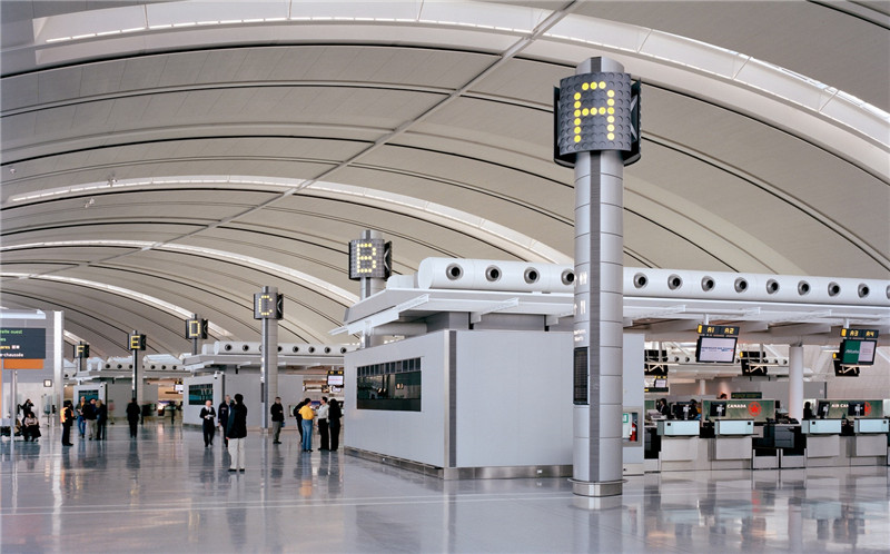 多倫多皮爾遜 機(jī)場標(biāo)識(shí)設(shè)計(jì)與終端屋頂?shù)膱A弧相呼應(yīng)