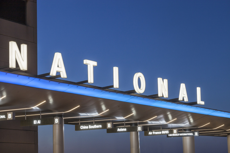 基于湯姆布拉德利國際航站樓作為洛杉磯每年數(shù)百萬國際旅客的抵達(dá)點(diǎn),EGG office增加了湯姆布拉德利國際航站樓的標(biāo)牌數(shù)量,提高了信息循環(huán)。湯姆布拉德利國際航站樓增加了新入口天篷,因此在天蓬頂部開發(fā)了新的識(shí)別標(biāo)牌,并設(shè)計(jì)了新的、易于更換的數(shù)字化航空公司標(biāo)牌。此外,更新了機(jī)場中央終端區(qū)周圍的國內(nèi)終端標(biāo)識(shí),外觀現(xiàn)代化,并在視覺上統(tǒng)一了所有終端標(biāo)識(shí)。