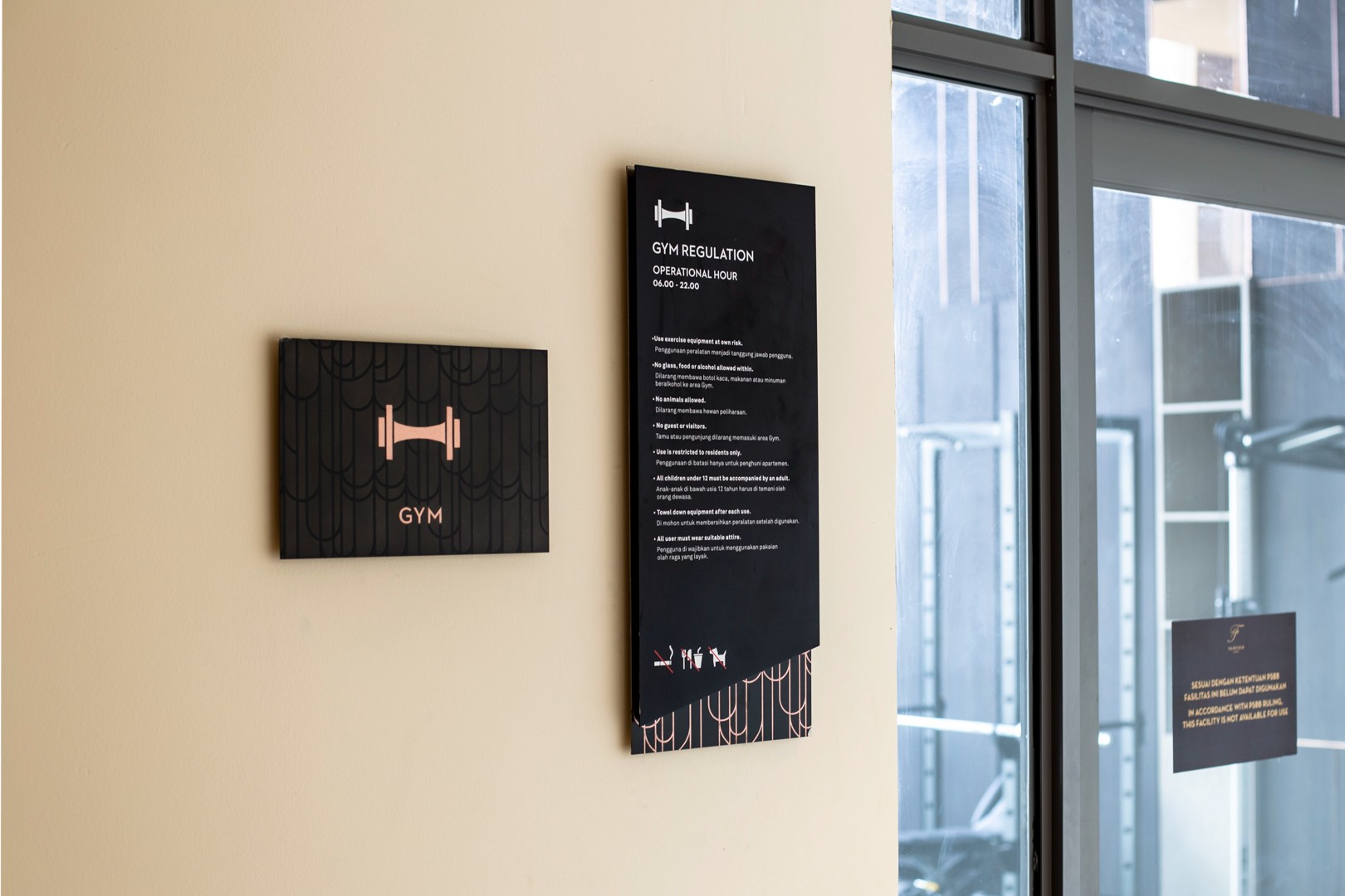 錦繡樓位于印度尼西亞雅加達,擁有高級住宅、高爾夫球場、健身房和完善的配套設(shè)施。Bentuk公司受邀為其進行導(dǎo)視系統(tǒng)設(shè)計?;阱\繡樓的外觀,bentuk公司采用金屬色、黑色和白色的配色,與環(huán)境相融合。將名稱首字母提取出來設(shè)計了線性的logo,復(fù)合式標牌將信息、色塊和圖形清晰地進行了層級劃分,整套導(dǎo)視系統(tǒng)打造了低調(diào)、華麗的尋路體驗。黑色背景色調(diào)強調(diào)質(zhì)感,金黃色包邊顯現(xiàn)高端標識品質(zhì)。