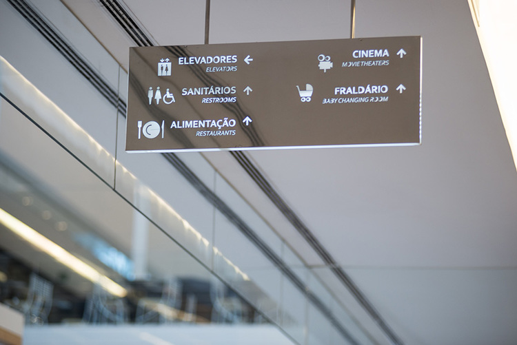 JK Iguatemi購(gòu)物中心位于巴西圣保羅,是當(dāng)?shù)貫閿?shù)不多的擁有一線品牌的商場(chǎng),旨在提供優(yōu)質(zhì)的購(gòu)物體驗(yàn),2buy公司受邀為其進(jìn)行導(dǎo)視系統(tǒng)設(shè)計(jì)?;谏虉?chǎng)的建樹(shù)外觀和內(nèi)飾, 2buy公司采用鏡面鋼和燈箱材質(zhì),燈箱兩面均使用帶有鏤刻信息的鏡面鋼貼面,信息清晰可見(jiàn),便于夜間尋路。標(biāo)牌外觀與空間相得益彰,打造了清爽、現(xiàn)代的購(gòu)物環(huán)境。