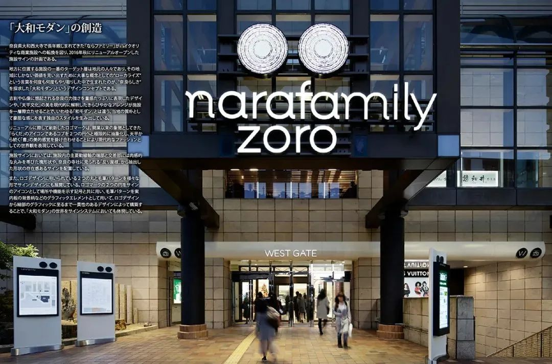 nara family商場(chǎng)位于日本奈良市,是一個(gè)大型商業(yè)綜合體,自1972年作為雙核大型購(gòu)物中心開(kāi)業(yè)以來(lái),經(jīng)過(guò)整修改造成為現(xiàn)在的風(fēng)格。nara family商場(chǎng)擁有三個(gè)設(shè)施,提供美食、零售、音樂(lè)廳和郵局等服務(wù),空間設(shè)計(jì)以現(xiàn)代天平文化為基礎(chǔ),標(biāo)牌設(shè)計(jì)融入了天平的元素,陶瓷制作的天平標(biāo)牌,具有裝飾性。精神堡壘使用水泥制作而成,采用鏤空的形式體現(xiàn)天平元素,整套導(dǎo)視系統(tǒng)將復(fù)古和時(shí)尚元素巧妙地結(jié)合在一起。