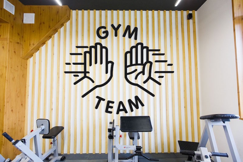 GYM TEAM健身俱樂部內部空間舒適明亮,Zernaev Studio針對其提倡的合作精神設計了擊掌的logo,導視系統(tǒng)貫穿了手這一元素,設計了一系列手勢來傳達信息,營造了積極友好的氛圍。在更衣室增添了標語,增加了趣味性。