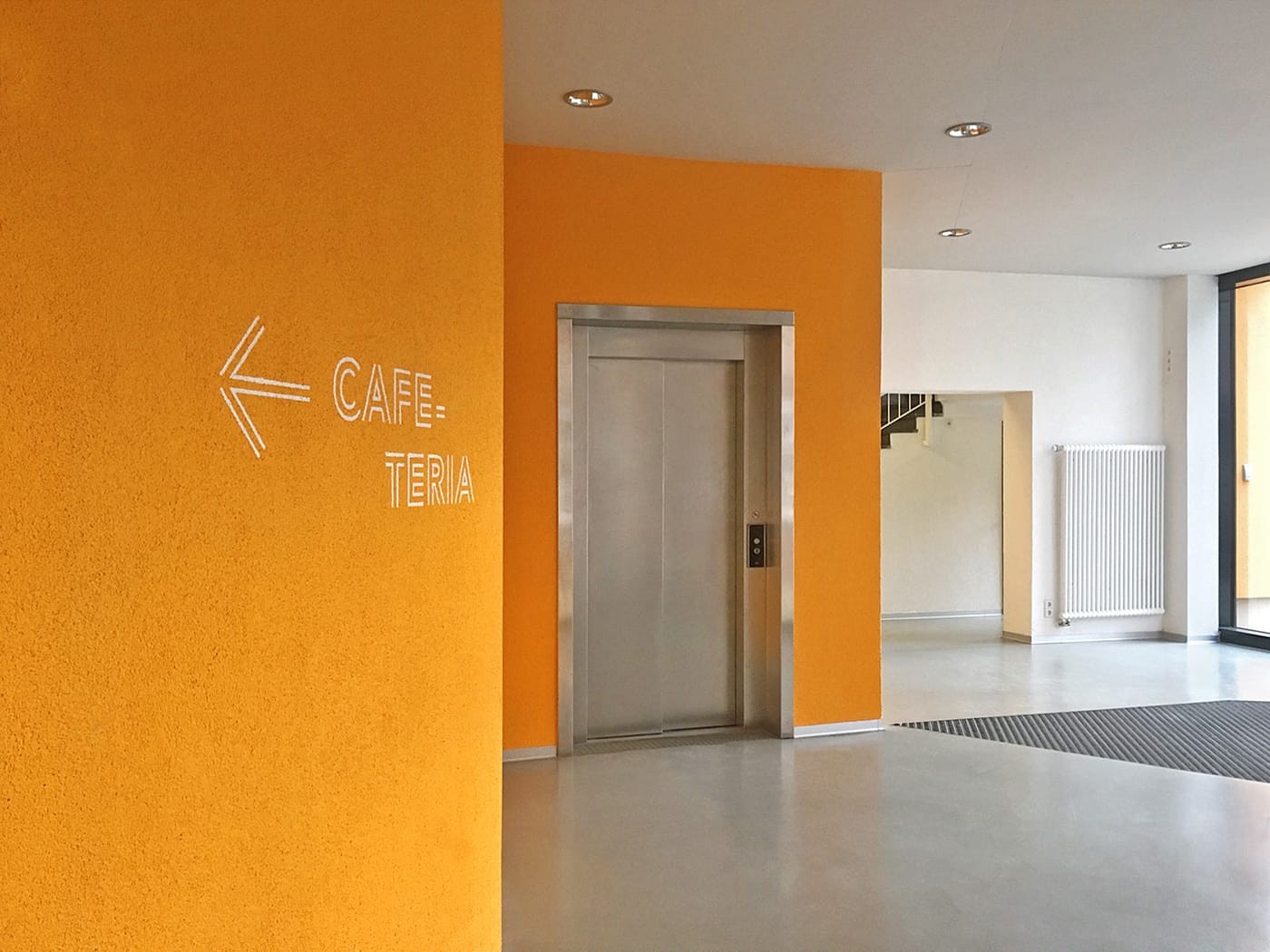 gourdin工作室以傳統(tǒng)為導(dǎo)向設(shè)計(jì)了雙線字體,簡約的工業(yè)風(fēng)與學(xué)校歷史相呼應(yīng)。線條將icon和文字信息相連結(jié),貫穿了建筑物。信息配色完全來源于環(huán)境配色,整體具有統(tǒng)一感。在餐廳設(shè)置了對(duì)話框形狀的面板,便于信息更替的,黃色同時(shí)增強(qiáng)了趣味性。