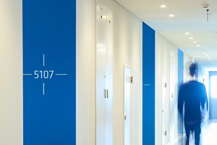 此外,MOTIVE公司在導(dǎo)視系統(tǒng)的設(shè)計(jì)中還融入了智能化元素。通過(guò)與先進(jìn)的信息技術(shù)相結(jié)合,這套導(dǎo)視系統(tǒng)能夠?qū)崟r(shí)更新實(shí)驗(yàn)室內(nèi)的各種信息,如安全提示、緊急疏散路線等,確保研究人員在任何時(shí)候都能獲得最準(zhǔn)確的指引。整套導(dǎo)視系統(tǒng)的設(shè)計(jì)不僅體現(xiàn)了衛(wèi)材筑波研究所追求創(chuàng)新和卓越的精神,也展現(xiàn)了MOTIVE公司在導(dǎo)視系統(tǒng)設(shè)計(jì)領(lǐng)域的專業(yè)能力和創(chuàng)新思維。