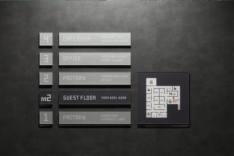 在戶外,Hiromura設(shè)計公司采用了玻璃和金屬框架制作的標(biāo)牌,充滿清新之感,其透明的材質(zhì)和精致的金屬結(jié)構(gòu),增添校園環(huán)境的現(xiàn)代感與藝術(shù)氣息。玻璃標(biāo)牌的運用,使得導(dǎo)視系統(tǒng)本身成為了校園中一道亮麗的風(fēng)景線。Hiromura設(shè)計公司為實驗室空間設(shè)計的插畫,巧妙地置于玻璃之上,為嚴(yán)謹(jǐn)?shù)目蒲蟹諊⑷肓嘶盍εc創(chuàng)造力。無疑展現(xiàn)了Hiromura設(shè)計公司對于空間特性的深刻理解和對于導(dǎo)視系統(tǒng)功能的創(chuàng)新思考。