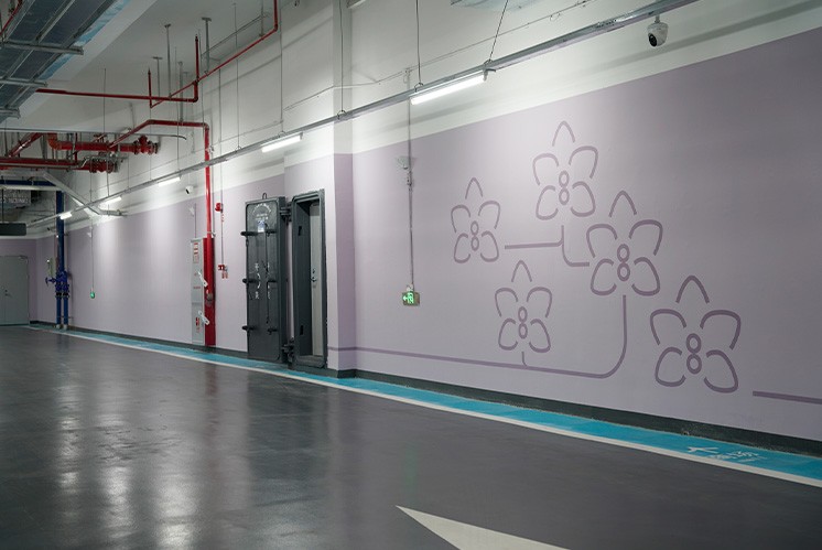 此外,導(dǎo)視系統(tǒng)在色彩搭配上也極為考究。除了主色調(diào)的白色,設(shè)計(jì)師巧妙地運(yùn)用了淡雅的綠色、紫色和粉色,分別象征竹的清新、蘭的寧?kù)o和菊的絢爛。這些色彩不僅與四君子的意象相契合,更在停車場(chǎng)的光影交錯(cuò)中,營(yíng)造出一種寧?kù)o而雅致的氛圍,讓人在停車的片刻也能感受到自然與文化的交融。