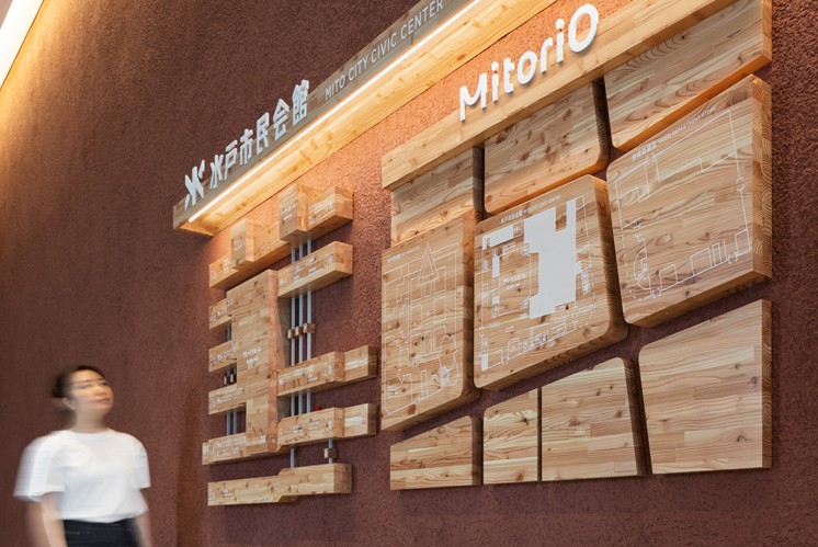 當視線被那面濃烈的紅墻所吸引,走近,一種沉穩(wěn)而富有生命力的結構便悄然呈現(xiàn)眼前。深紅如幕的背景之上,原木立柱與橫梁縱橫交錯,以近乎腳手架般的構筑邏輯,層疊、穿插、咬合。