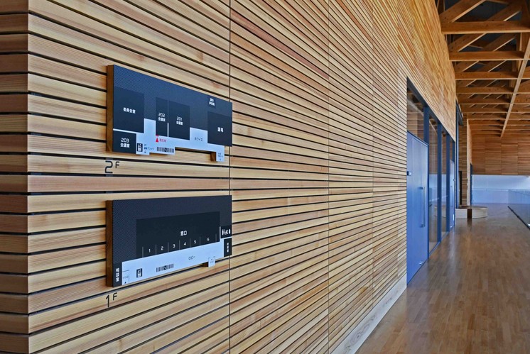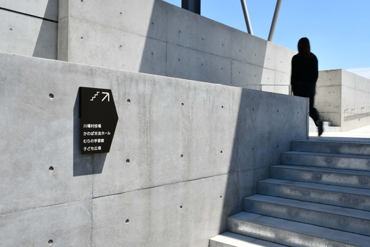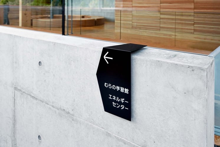標(biāo)識顏色以黑色為主調(diào),沉穩(wěn)且具質(zhì)感,與基地建筑中混凝土的質(zhì)樸、木材的溫暖形成呼應(yīng)。黑色標(biāo)識鑲嵌于清水混凝土墻、矗立在戶外場地,在明亮的自然光線與簡潔的建筑環(huán)境襯托下,既不喧賓奪主,又清晰傳遞信息,如同林業(yè)產(chǎn)業(yè)歷經(jīng)歲月沉淀的厚重底蘊(yùn),默默訴說著川場村與木材、自然共生的故事 。