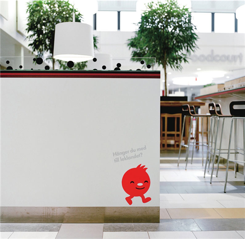 吉祥物Inge,以及其他的一些角色,都安排在購(gòu)物中心的廣場(chǎng)內(nèi),例如,小朋友的盥洗室內(nèi)、咖啡臺(tái),甚至某個(gè)墻角都會(huì)發(fā)現(xiàn)吉祥物Inge的身影。