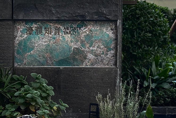 從踏入住宅的第一眼起,瑧山府的標識系統(tǒng)便以 “藝術觀感” ,構建起山居的精神內核。古銅做舊的銘牌鑲嵌在大理石墻面上,金屬的復古質感,與石材的天然肌理相得益彰,讓訪客在視覺感知中,提前進入 “云山閑庭” 的詩意場景。