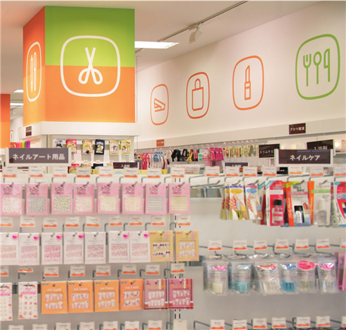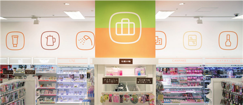 就商店的空間而言,大量的商品象形圖遍布店內(nèi)的墻體和柱體,通過這些向顧客展示店內(nèi)不同種類的商品。通過利用鮮艷而柔和的顏色,設(shè)計師為整個室內(nèi)空間營造出一種愉悅感。將橙色作為這個商店設(shè)計的主色調(diào),黃色和綠色作為輔助裝飾的顏色。