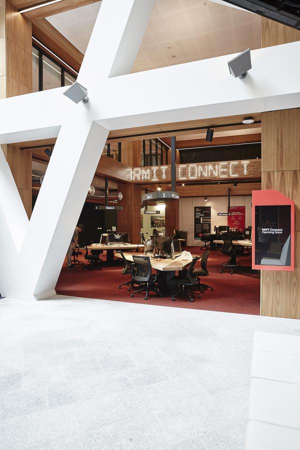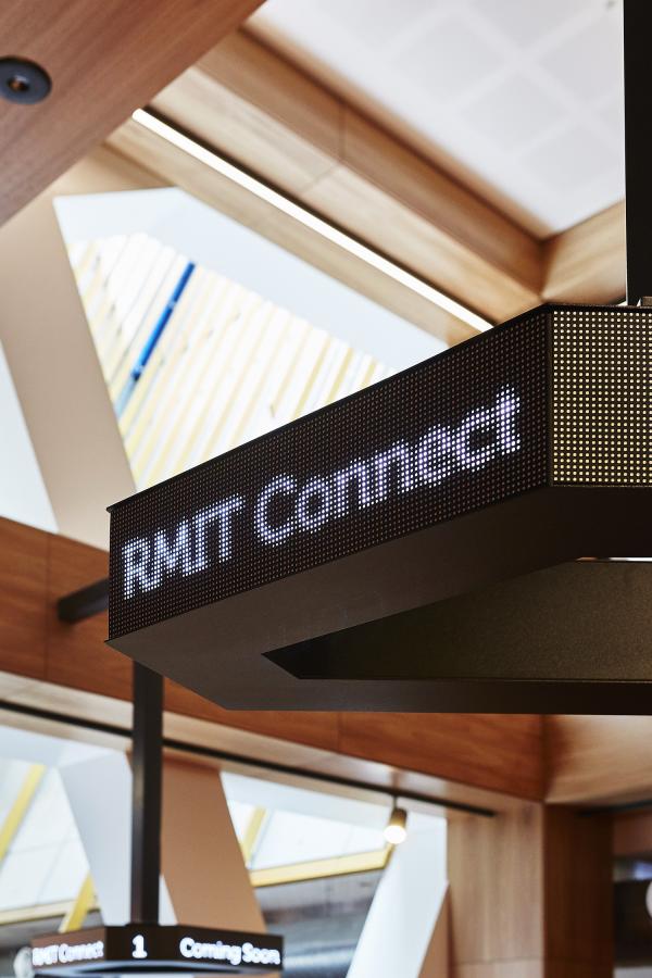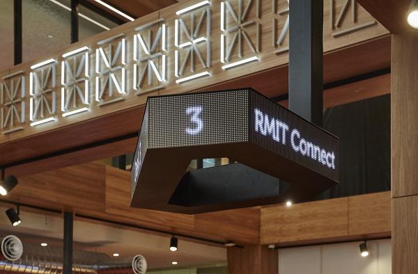 新學(xué)術(shù)街大樓,是一個(gè)大型的,多層次的教學(xué)空間,也是主要公共交通走廊和皇家墨爾本理工大學(xué)校園中心之間的重要紐帶。因此如何在這個(gè)復(fù)雜的空間中合理的設(shè)置導(dǎo)視系統(tǒng),顯得尤其重要。