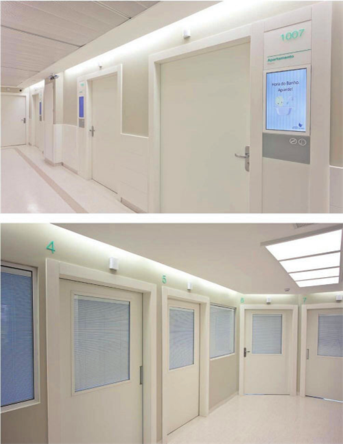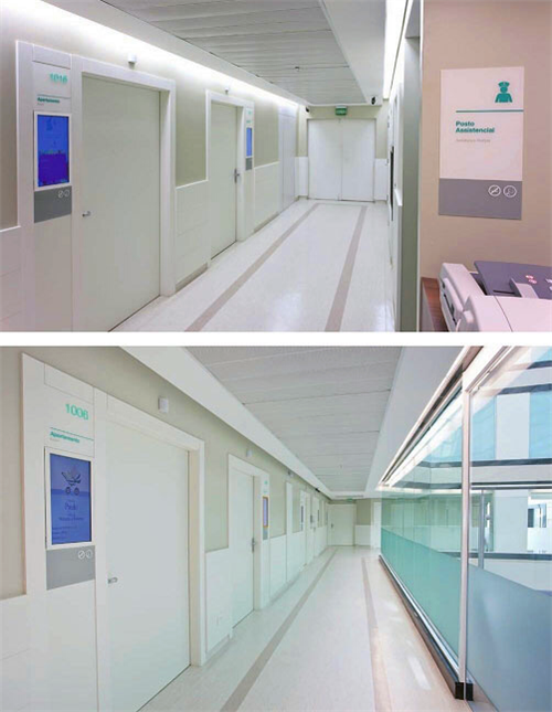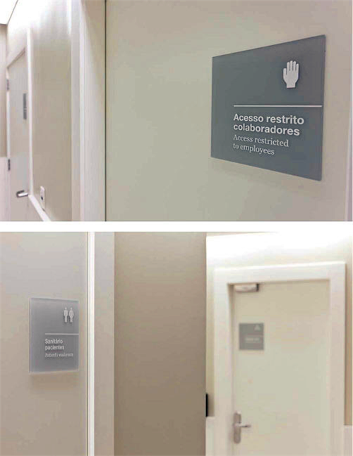 Moinhos de Vento醫(yī)院新路標(biāo)導(dǎo)視系統(tǒng)工程的初期階段是在新產(chǎn)科病房進行的。作為一套獨特新穎的設(shè)計體系,其中的信息全是用雙語(葡萄牙語和英語)進行介紹的,而且在所有房間和套房的入口處都裝有高科技LED顯示屏。清爽、大方的設(shè)計與醫(yī)院的整體環(huán)境氛圍十分契合。