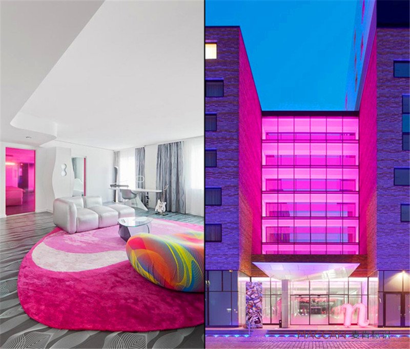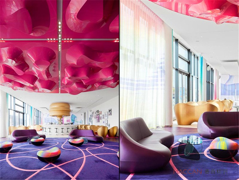 設(shè)計師Karim Rashid:我的目標(biāo)是把技術(shù),視覺效果,紋理,顏色以及內(nèi)在的需求融合在一個簡單但是不凌亂,但是更感性的居住環(huán)境中。我們的設(shè)計涉及各個層次,并定義和塑造我們的內(nèi)心,創(chuàng)新,鼓舞。我對于物質(zhì)世界的體驗一直抱有追尋,如誘人的,鼓舞人心的,個性化的,并符合這個數(shù)字世界的,這就是我想在這個酒店里做的空間。