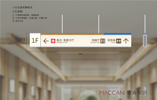 二級導向系統(tǒng)標識:指醫(yī)生進入某一建筑后,引導患者進入某一科室的標識。大致可以分為: