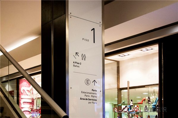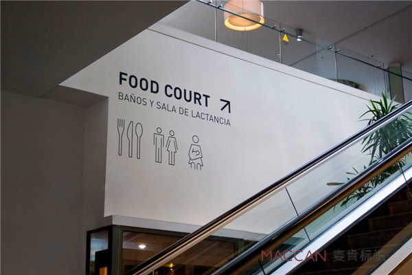 實(shí)際上,購物中心跟百貨的標(biāo)識(shí)設(shè)計(jì)要求并不相同。百貨的通道偏窄,視覺比較狹隘,空間有所限制,女裝區(qū)、男裝區(qū)分類很明確。而購物中心主要以主力店加品牌店的模式,內(nèi)部空間也寬敞,需要通過樓梯將客流導(dǎo)入到上層后再通過樓面布局引導(dǎo)。調(diào)查發(fā)現(xiàn),大多數(shù)百貨只是對(duì)廁所和出口等有一些簡單的功能性指引,而購物中心講究搭配,包括服務(wù)臺(tái)、收銀臺(tái)、電梯等,雖然也有一些功能性、方向性上的設(shè)計(jì),但更多通過平面圖來引導(dǎo),這就要做到人、圖、環(huán)境一致。
