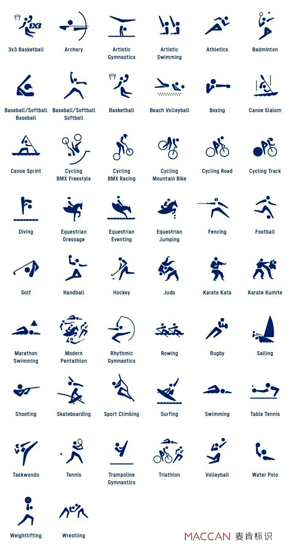 這73個圖標(biāo)的形象,由日本設(shè)計師廣村正彰(Masaaki Hiromura)完成,并由日本動態(tài)設(shè)計師井口皓太(KotaIguchi)制作了動畫效果,以完整的動作模式來展示每個運(yùn)動項目。