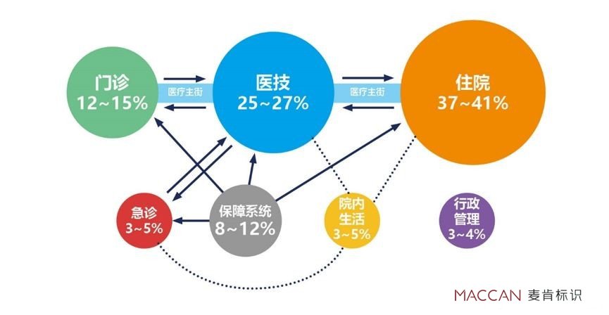 醫(yī)療建筑看似千頭萬緒,但實(shí)際上其功能格局具有很強(qiáng)的規(guī)律性。以綜合醫(yī)院為例,其建筑功能分為門診、急診、醫(yī)技、住院、后勤保障系統(tǒng)、行政管理和院內(nèi)生活這七部分。明確建筑物之前的關(guān)系才能更合理科學(xué)的進(jìn)行標(biāo)識(shí)分布規(guī)劃。