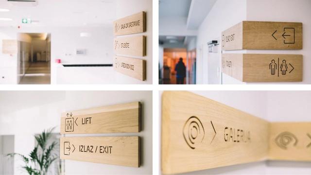 studiosudar使用木材作為室內(nèi)標(biāo)牌主材料,而戶外標(biāo)牌主要使用金屬。