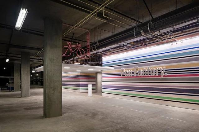 EGG Office利用筆的線性概念來(lái)完成特定地點(diǎn)的標(biāo)牌設(shè)計(jì)和圖形設(shè)計(jì)。為了吸引工廠周?chē)淖⒁?,設(shè)計(jì)師建了雕塑燈塔作為項(xiàng)目的主要標(biāo)識(shí)。他們還利用黑白調(diào)色板和流行色為兩維和三維環(huán)境圖形元素上色,以補(bǔ)充建筑師所開(kāi)發(fā)的色彩斑斕的水平圖案。
