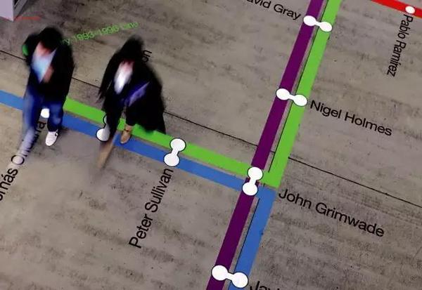 壁畫標識藝術是導向標識功能與壁畫藝術相融合的標識形式。壁畫包括墻面壁畫、天頂壁畫等形式。巨大的體量感、與環(huán)境相融合的藝術效果,成為環(huán)境中人們識別空間的記憶點。